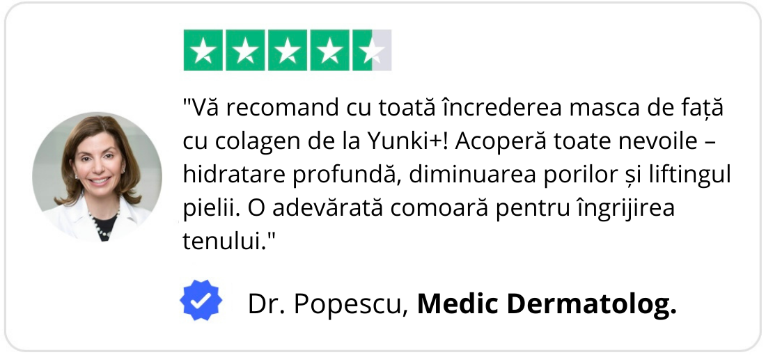 Colagen – Îmbunătățește elasticitatea pielii și oferă un aspect mai ferm și tonifiat.