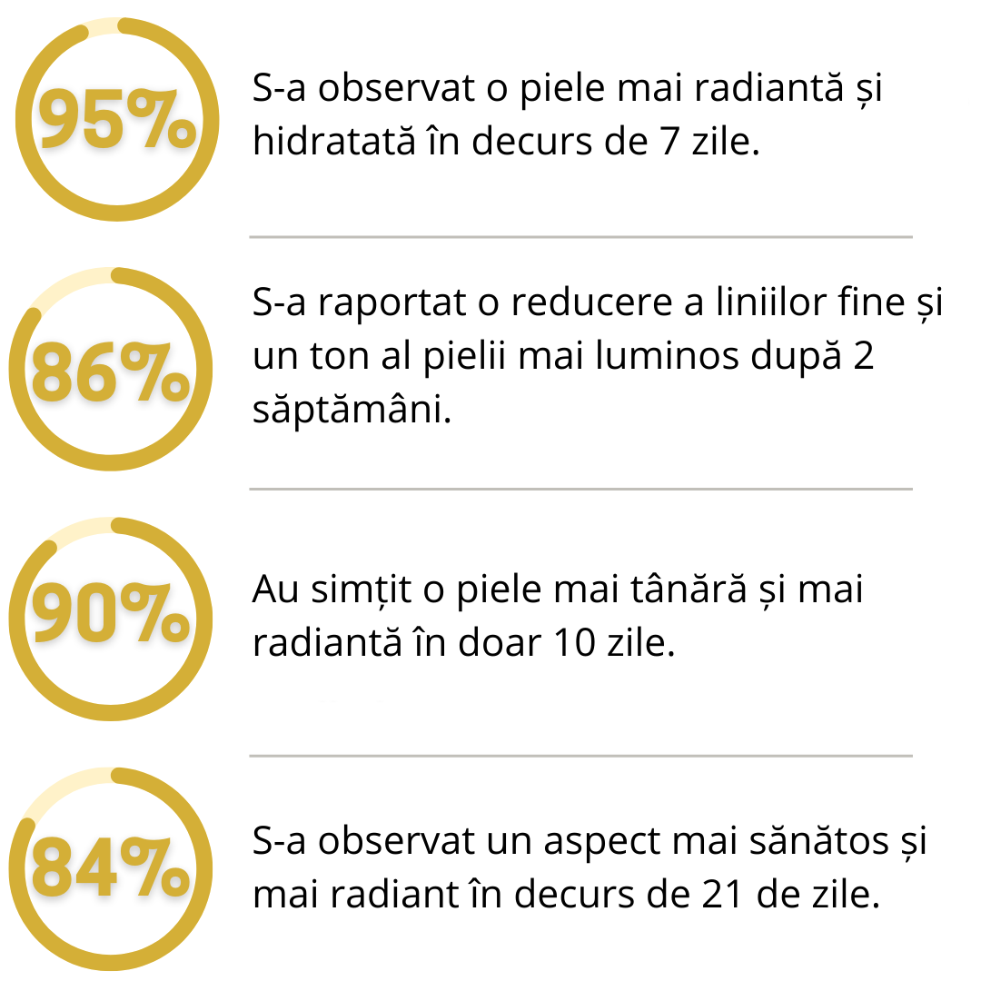 O piele radiantă, tânără, sănătoasă și proaspătă încă de la primele utilizări.
